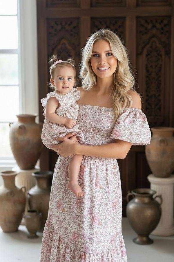 Bubble Chocolate Kids Dress + Hairclip | Bamboo Cotton