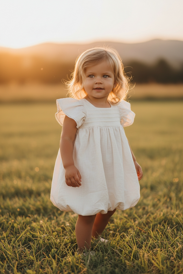 ONE SAMPLE Bubble Vanilla Kids Dress | Linen