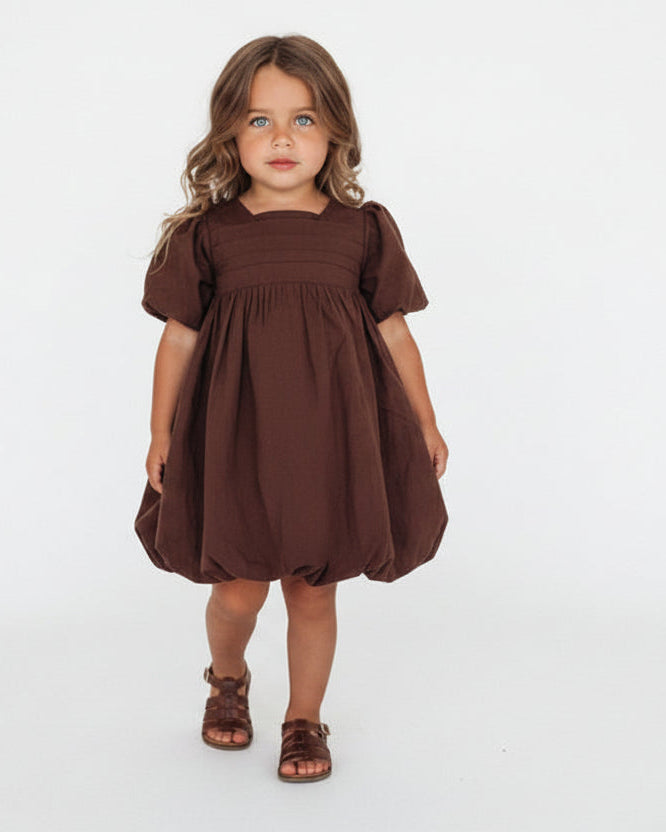 Bubble Chocolate Kids Dress & Hairclip | Bamboo Cotton (Reduced due to possible marks on material)